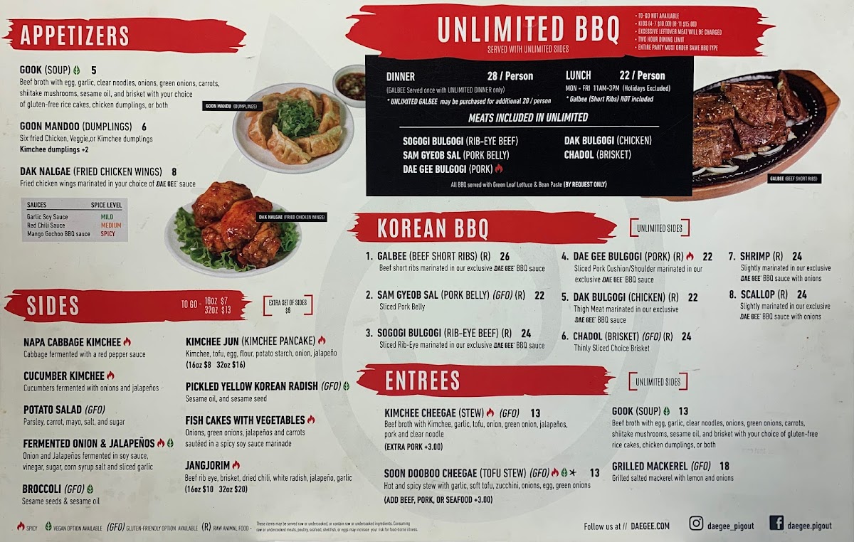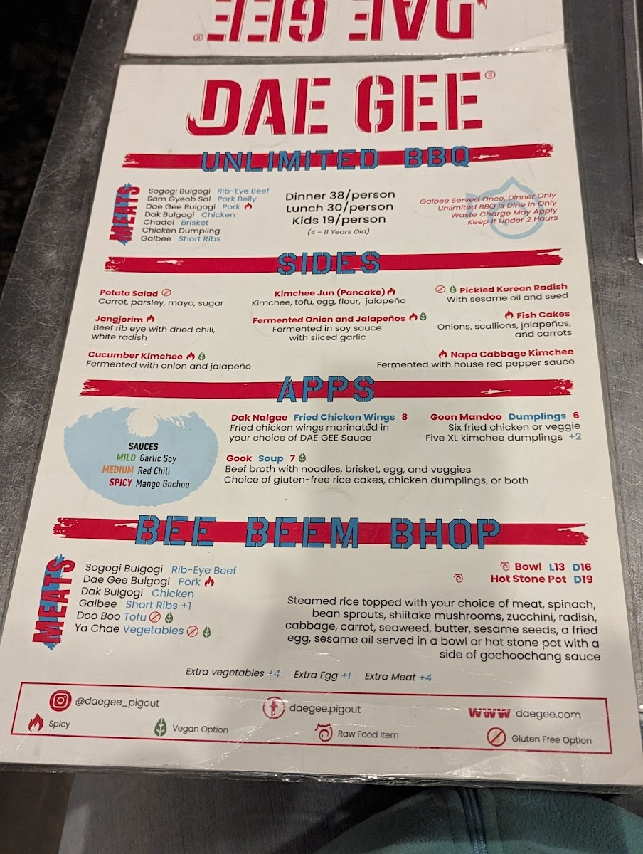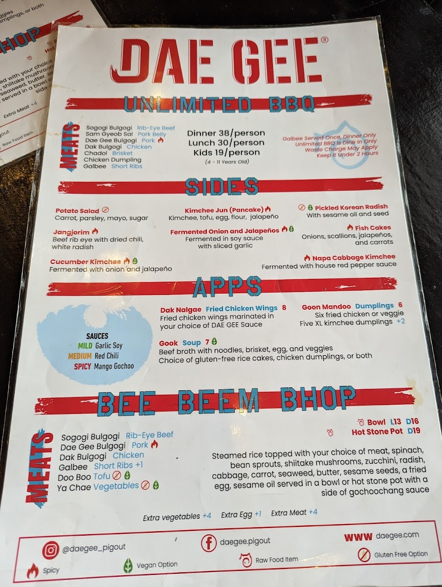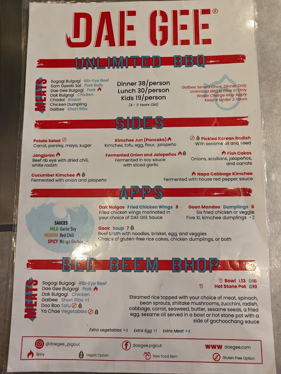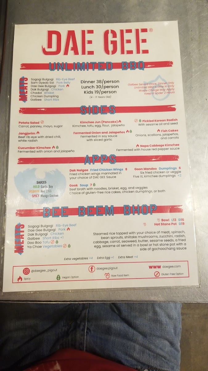 DAE GEE KOREAN BBQ Denver offers an authentic and interactive dining experience right in the heart of the city. Located at 460 Broadway St, this establishment features an all-you-can-eat KBBQ menu brimming with fresh, high-quality meats and mouthwatering sides. Guests rave about the sweet and spicy flavors, along with attentive service that keeps the grilled dishes flowing. The friendly staff ensures dietary accommodations, enhancing the communal atmosphere that makes dining here so enjoyable. With a bustling yet welcoming vibe, DAE GEE is perfect for both casual dinners and celebratory gatherings. Prepare for a flavorful culinary adventure that keeps you coming back for more.