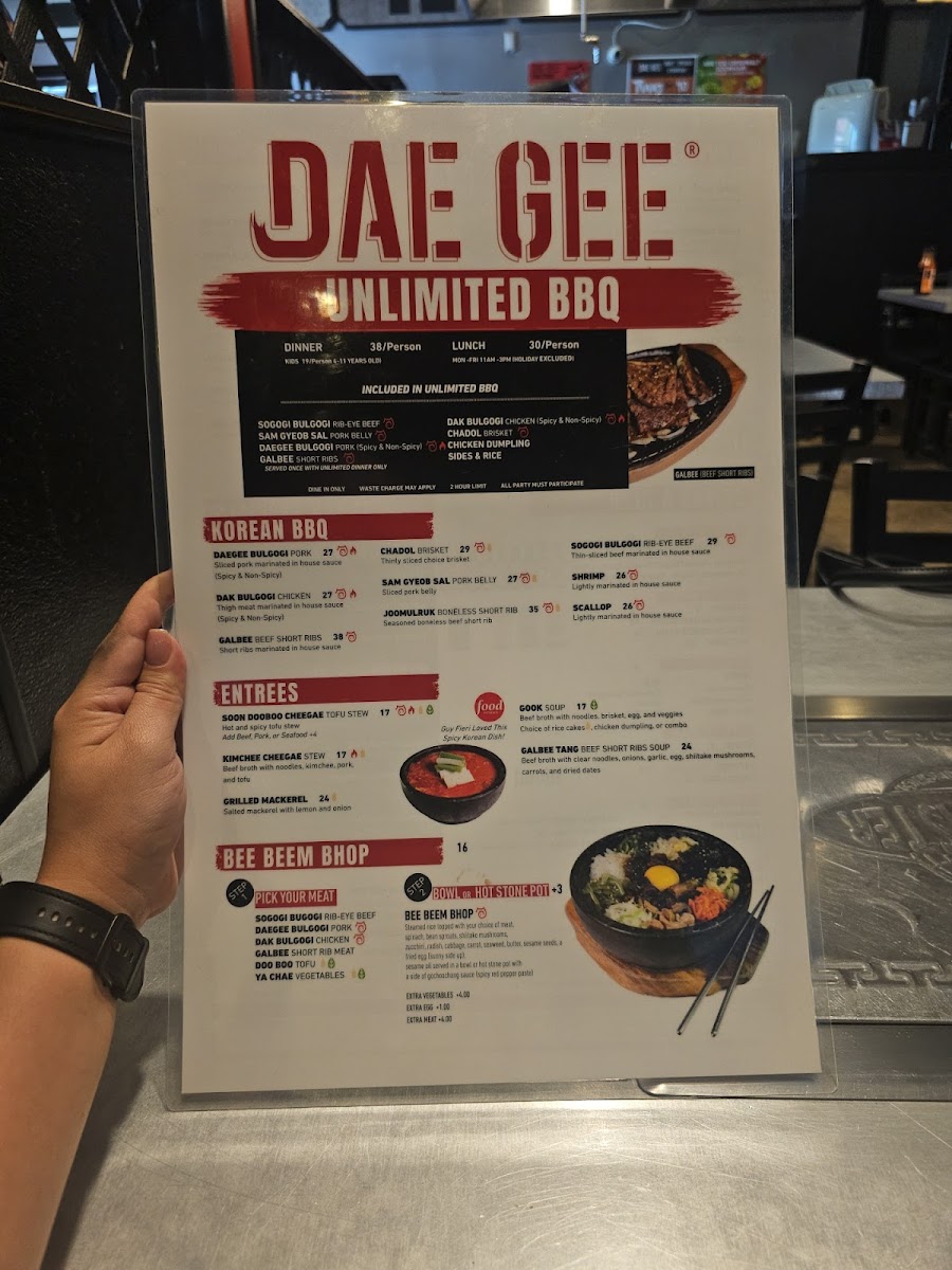 “ Always a killer Korean BBQ place to eat! The food is great quality and the service had always been great! I always go to DAE GEE for Korean BBQ! The all you can eat option is totally worth it for 38 a person! So good! ”
